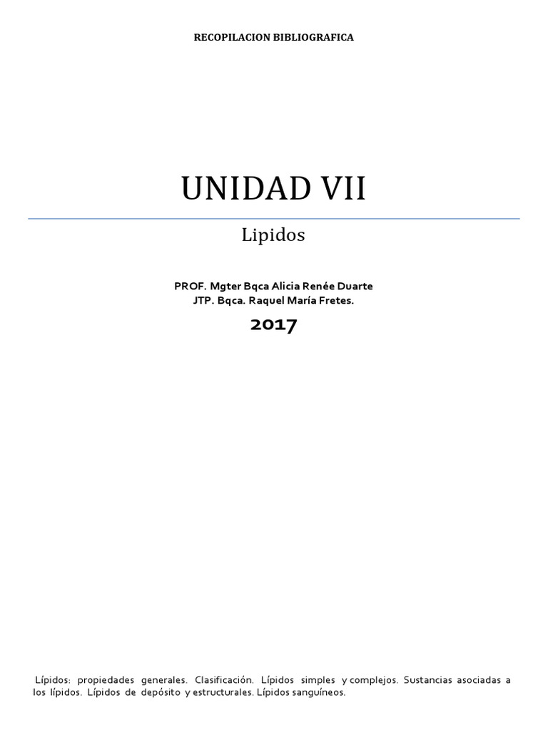 los lípidos. Lípidos de depósito y estructurales. Lípidos sanguíneos.