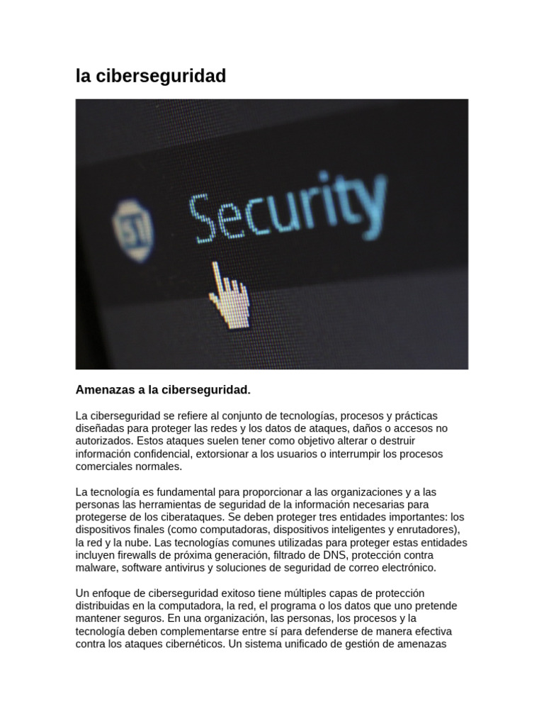 La ciberseguridad se refiere al conjunto de tecnologías, procesos y prácticas
