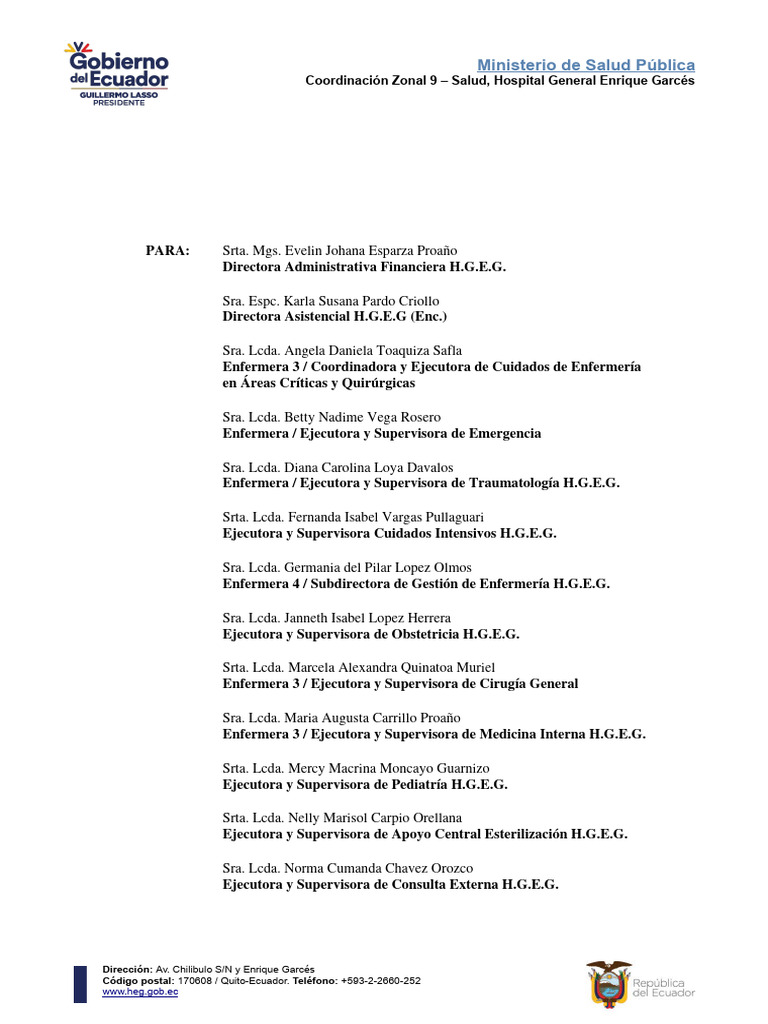 Ejecutora y Supervisora Centro Quirúrgico H.G.E.G