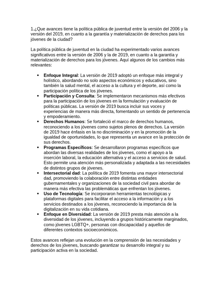 ¿Que avances tiene la política pública de juventud entre la versión del 2006 y la