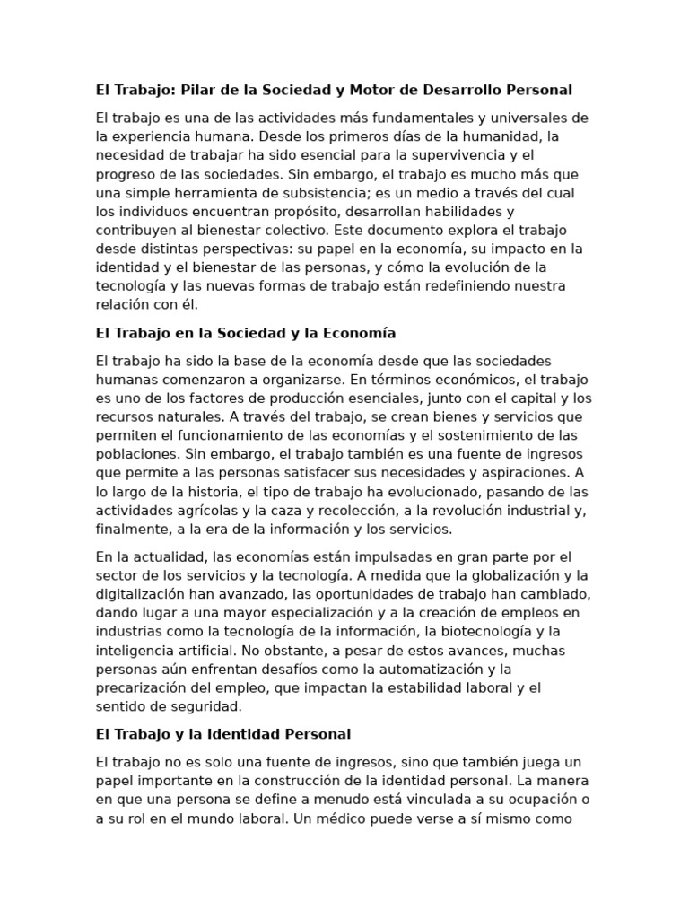 progreso de las sociedades. Sin embargo, el trabajo es mucho más que