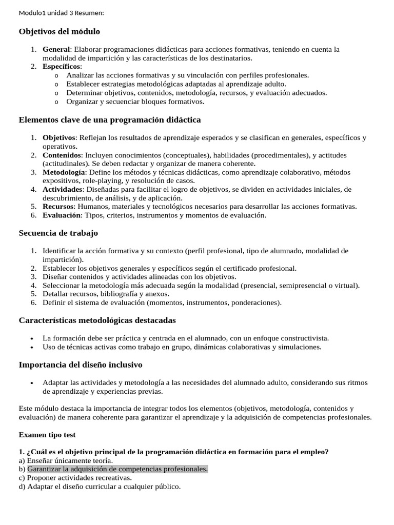 1. General: Elaborar programaciones didácticas para acciones formativas, teniendo en cuenta la