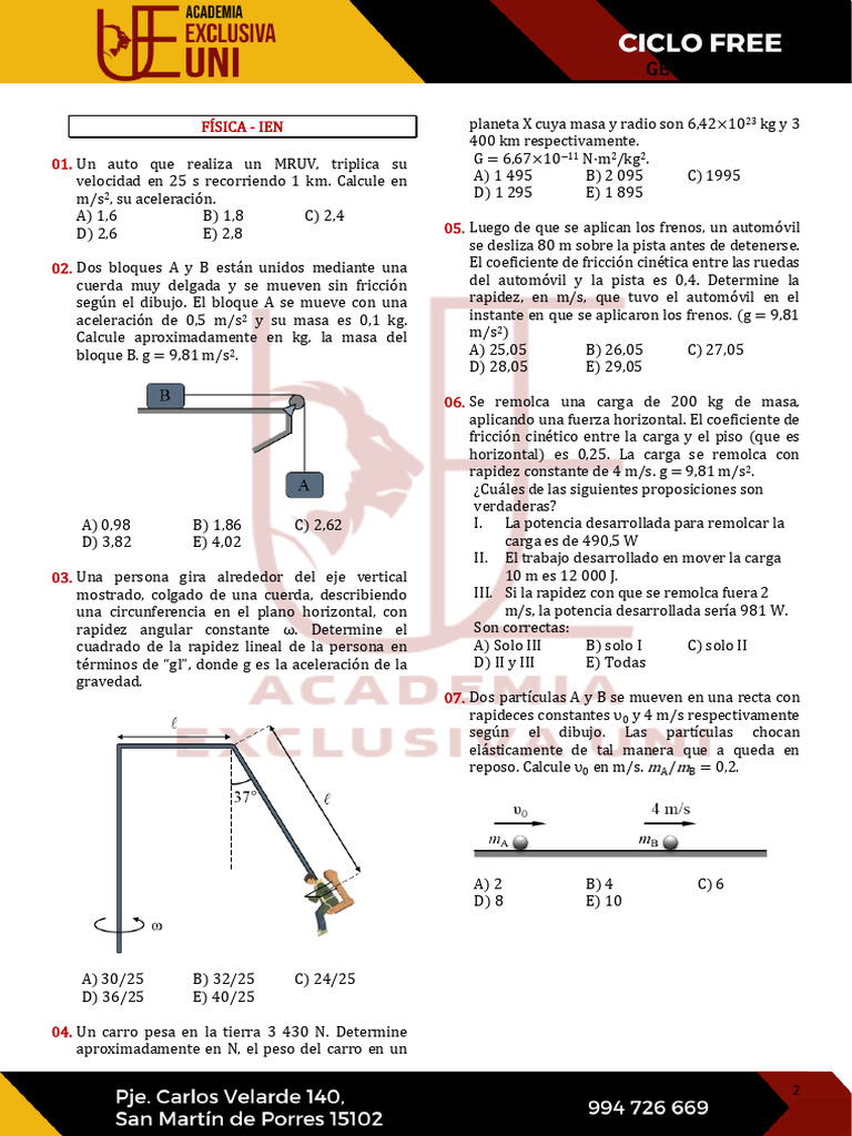 01. Un auto que realiza un MRUV, triplica su G = 6,67×10−11 N·m2/kg2.