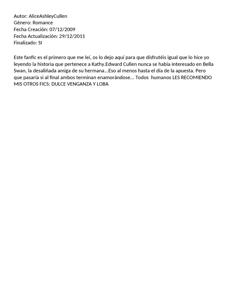leyendo la historia que pertenece a Kathy.Edward Cullen nunca se había interesado en Bella