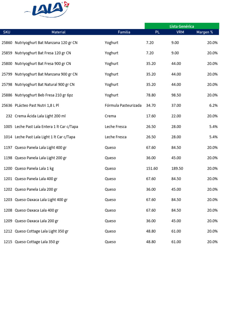 26378 UHT Lala Desl Semi UE 1L 12pz Leche UHT 326.80 348.00 6.1%