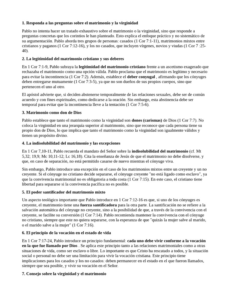 su argumentación. Pablo aborda tres grupos de personas: casados (1 Cor 7:1-11), matrimonios mixtos entre