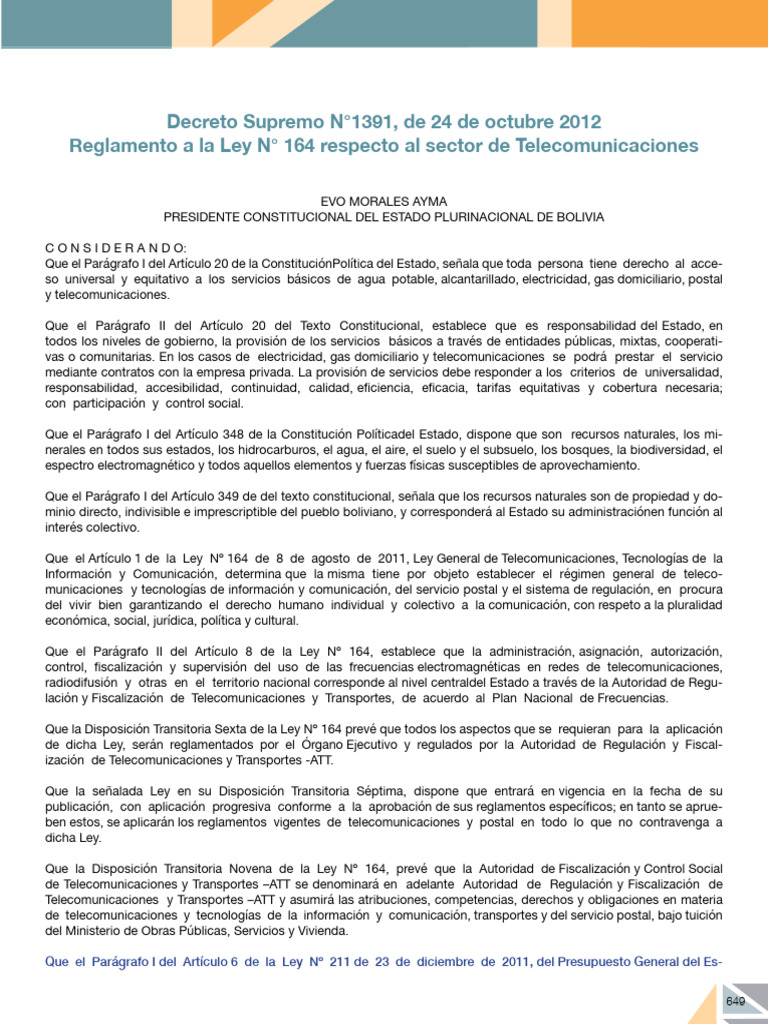 Decreto Supremo N°1391, de 24 de octubre 2012