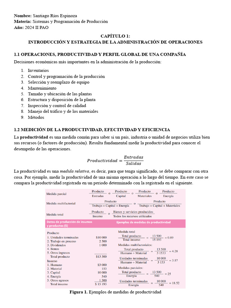 1.1 OPERACIONES, PRODUCTIVIDAD Y PERFIL GLOBAL DE UNA COMPAÑÍA