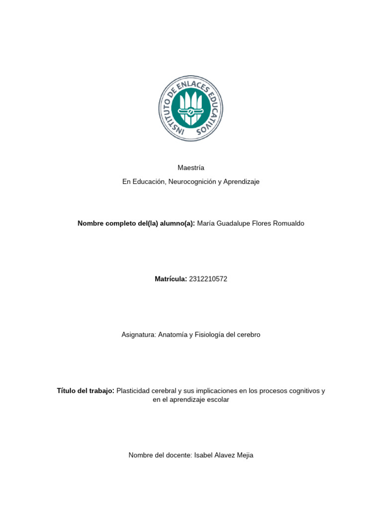 Título del trabajo: Plasticidad cerebral y sus implicaciones en los procesos cognitivos y