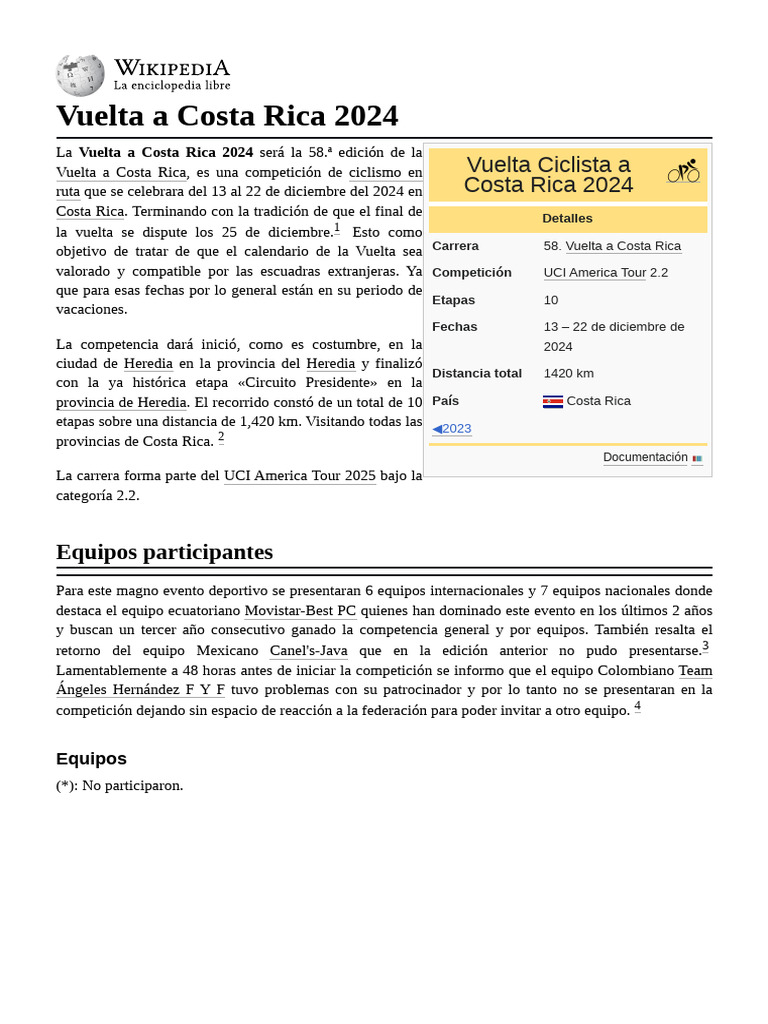 Vuelta a Costa Rica, es una competición de ciclismo en Vuelta Ciclista a