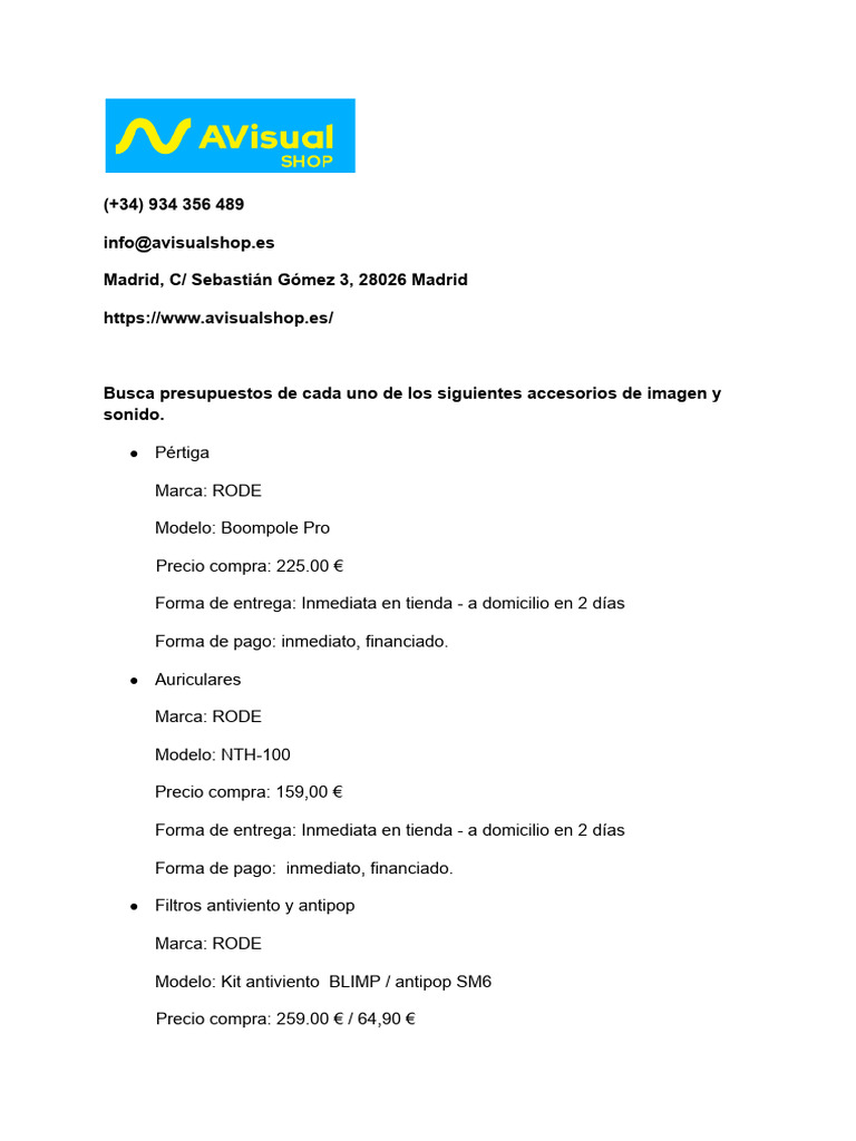 Busca presupuestos de cada uno de los siguientes accesorios de imagen y