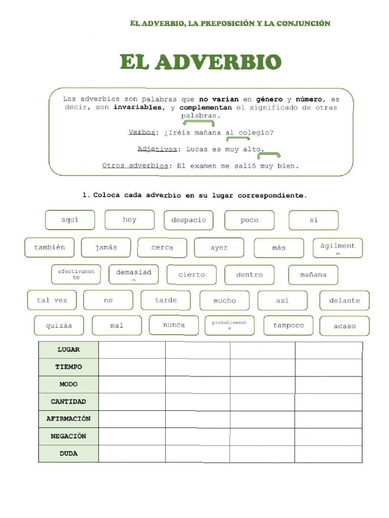 EL ADVERBIO, LA PREPOSICIÓN Y LA CONJUNCIÓN