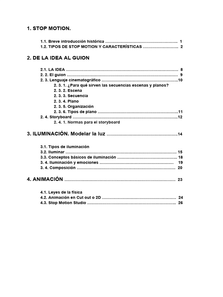 1.2. TIPOS DE STOP MOTION Y CARACTERÍSTICAS …………………….. 2