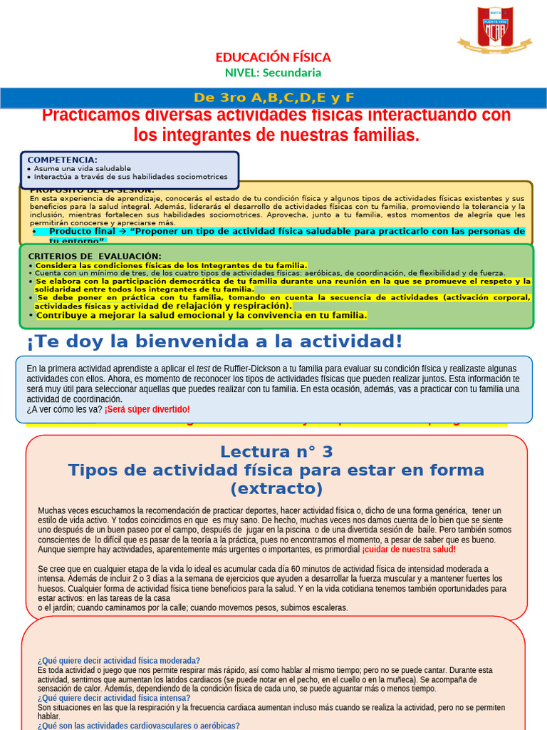 • Se debe poner en práctica con tu familia, tomando en cuenta la secuencia de actividades (activación corporal,