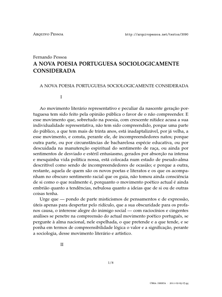 1912 Textos de Crtica e de Interveno . Fernando Pessoa. Lisboa: tica, 1980: 15. 1 publ. in A guia, 2 srie, n 4. Porto: Abr. 1912.
