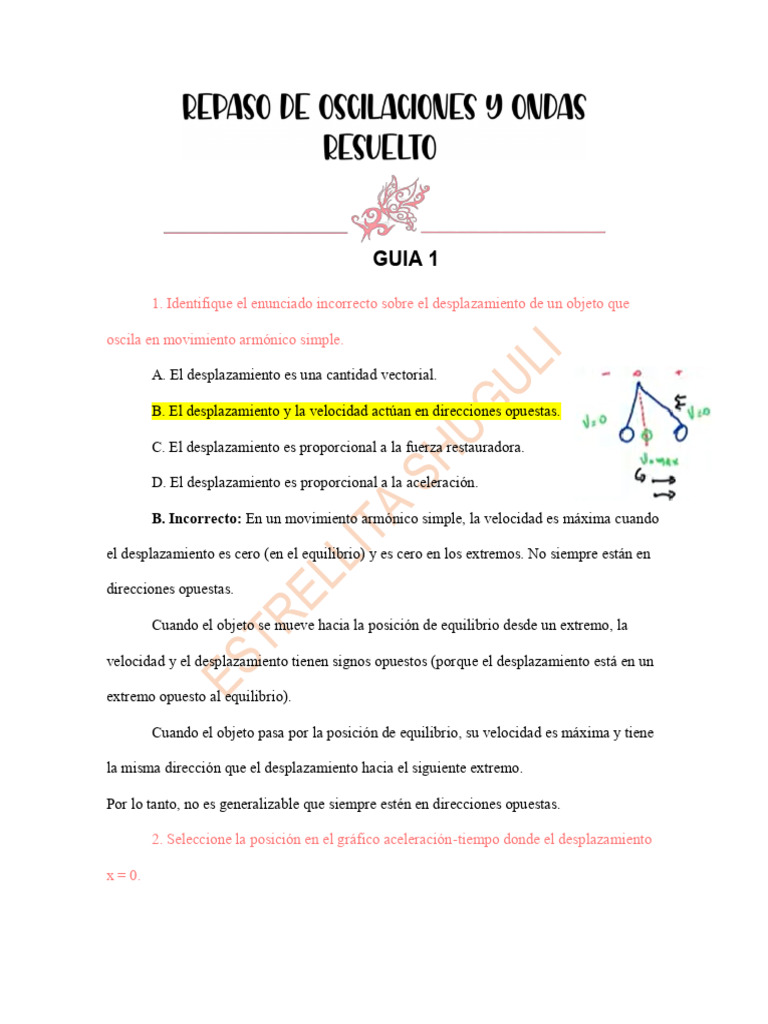 4. Una partícula oscila en un movimiento armónico simple. El desplazamiento de la