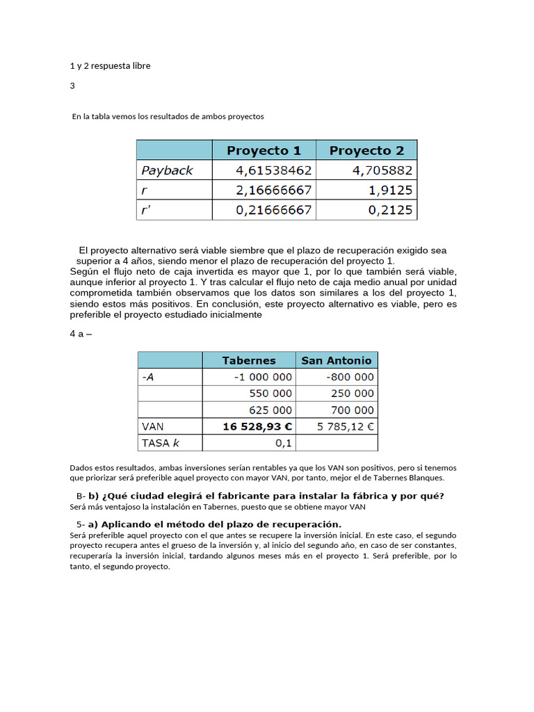 recuperaría la inversión inicial, tardando algunos meses más en el proyecto 1. Será preferible, por lo