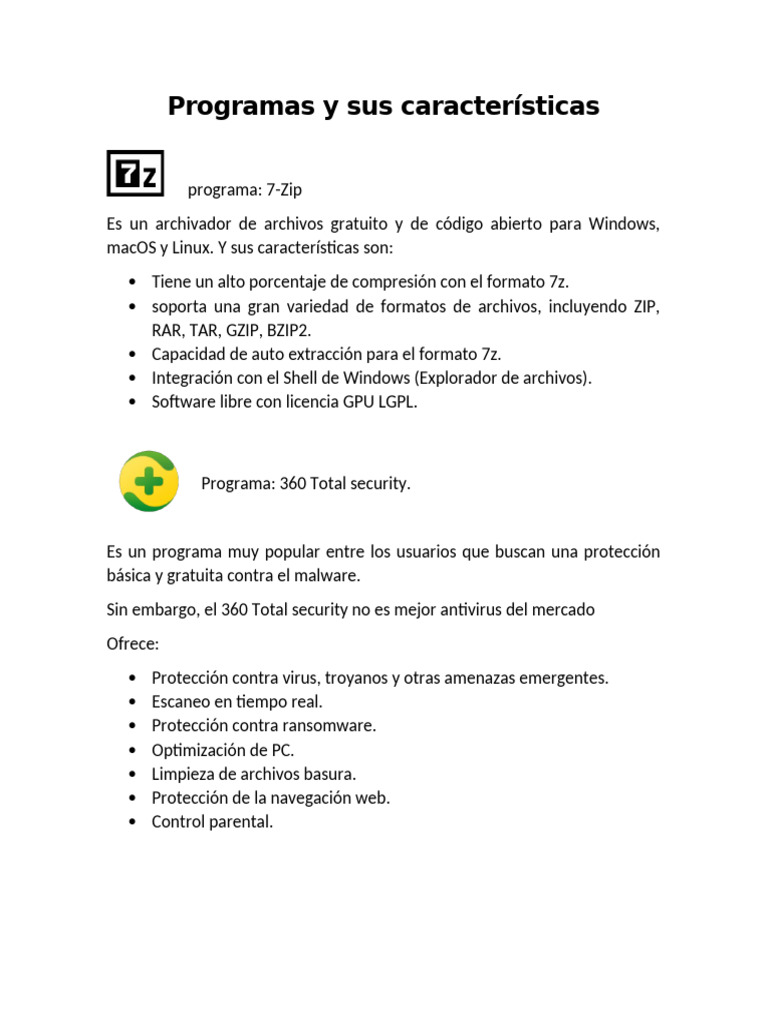 Programas y sus características