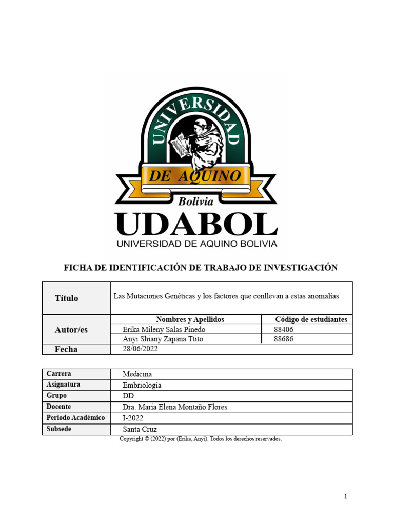 Título: Las Mutaciones Genéticas y los factores que conllevan a estas anomalías