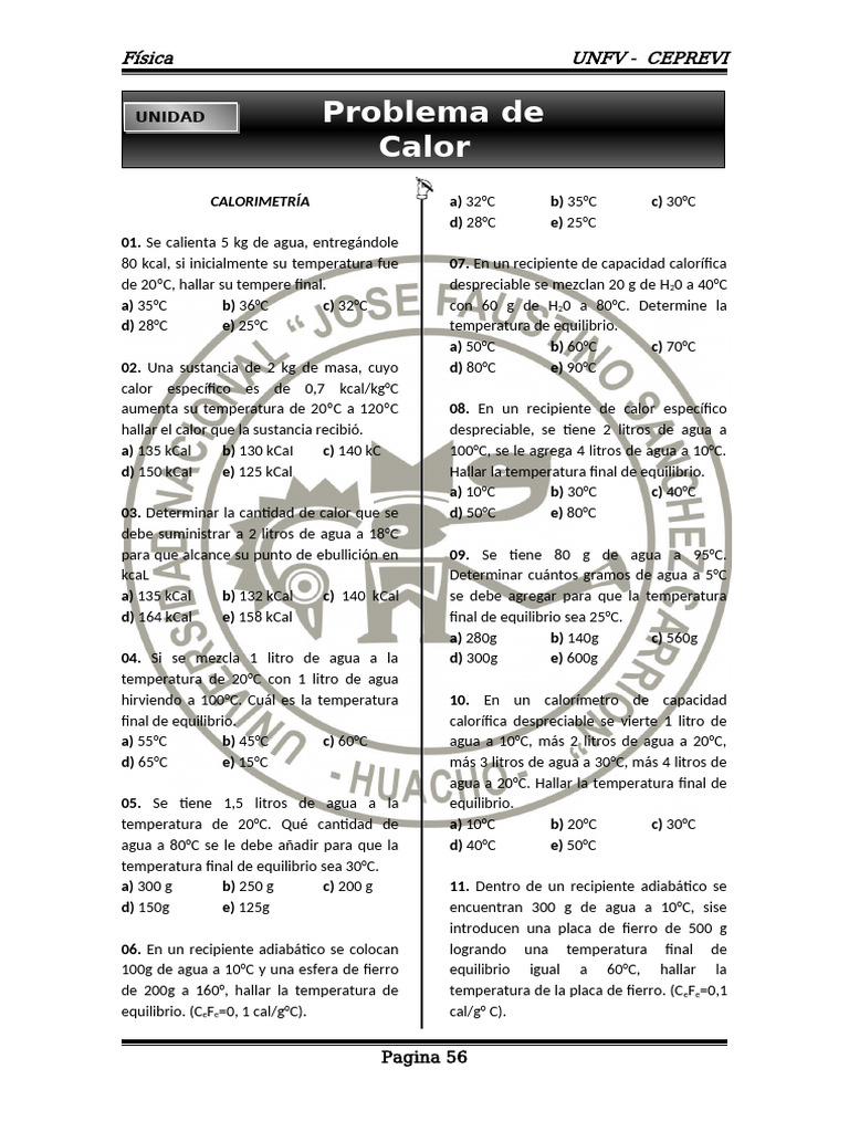 d) 32°C e) 20°C —Calor específico del acero: 0,1 cal/g°C