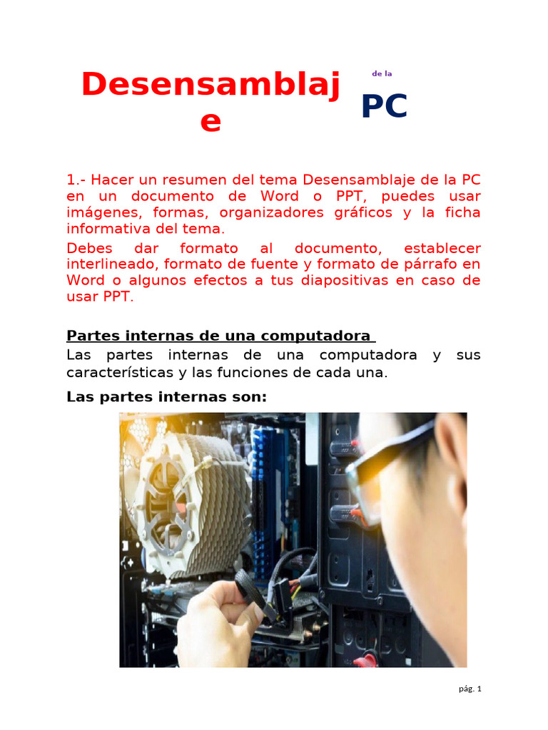 1.- Hacer un resumen del tema Desensamblaje de la PC