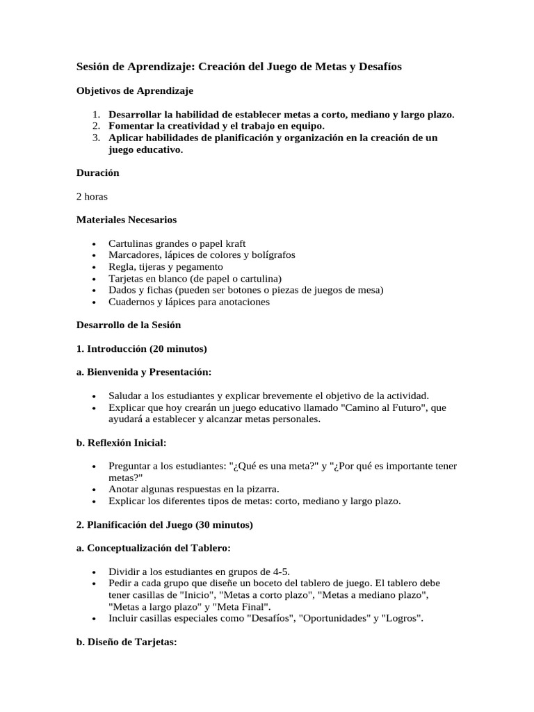 Sesión de Aprendizaje: Creación del Juego de Metas y Desafíos
