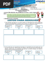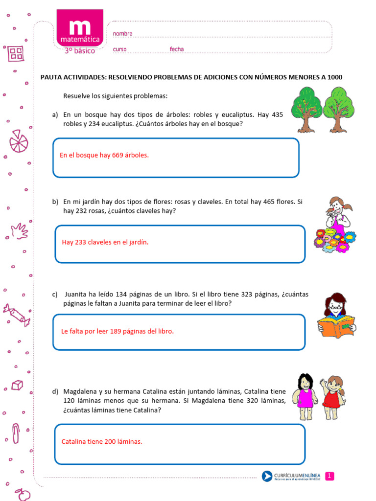 PAUTA ACTIVIDADES: RESOLVIENDO PROBLEMAS DE ADICIONES CON NÚMEROS MENORES A 1000