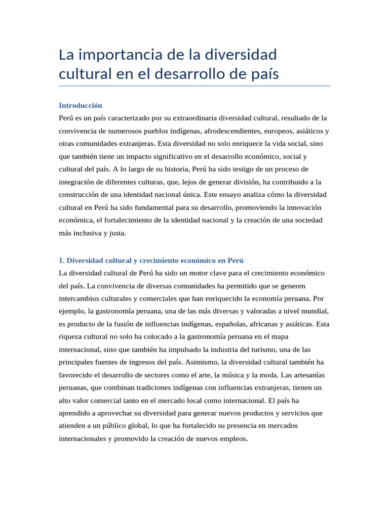 cultural en Perú ha sido fundamental para su desarrollo, promoviendo la innovación