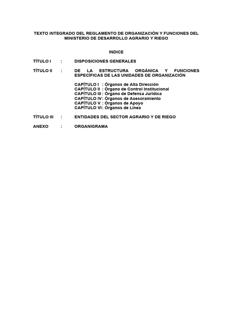 ORGANIGRAMA DEL MINISTERIO DE DESARROLLO AGRARIO Y RIEGO