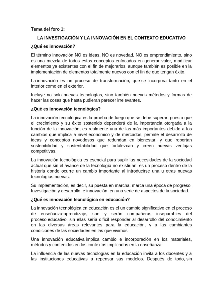 educación. Justifique ¿por qué es una innovación?
