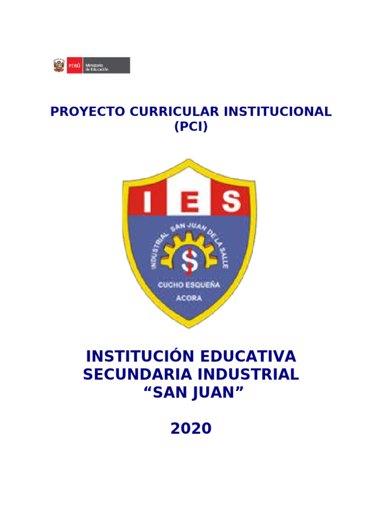 VISTO El Proyecto Curricular Institucional (PCI) de la Institución Educativa Secundaria “San Juan”, Cucho Esqueña,