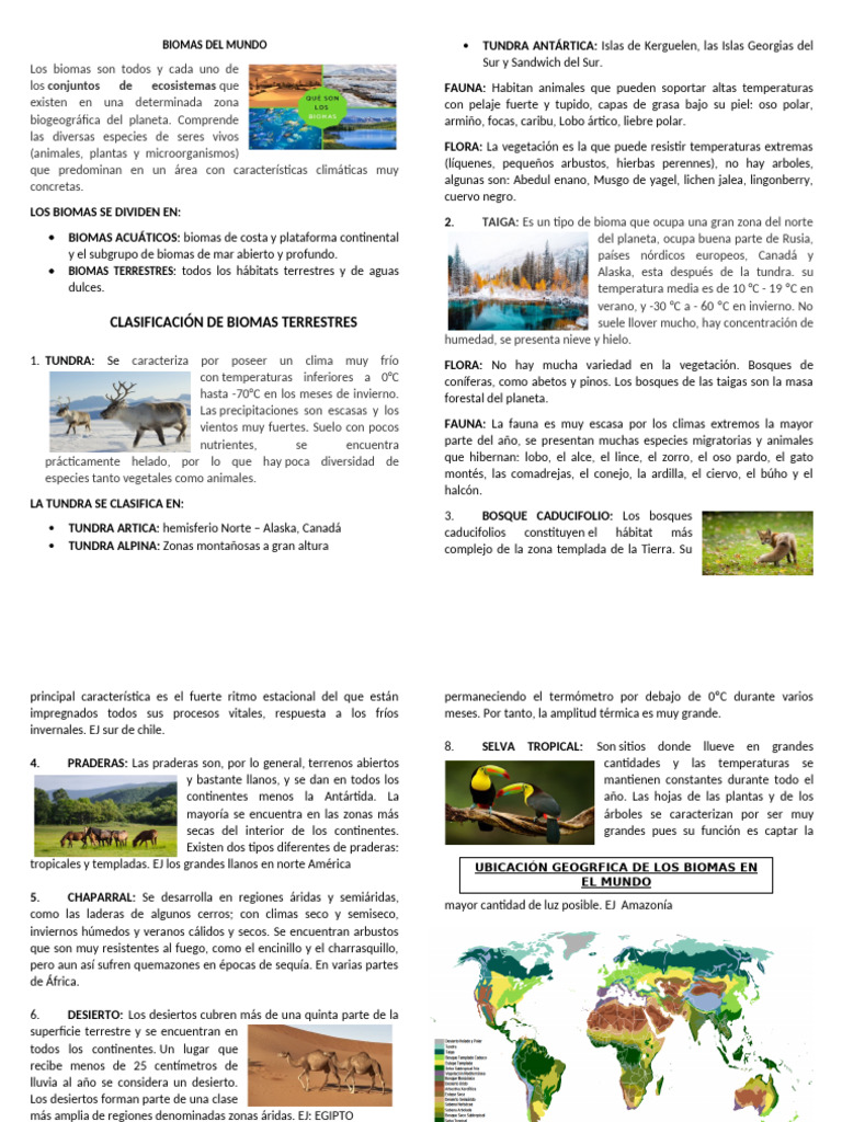 1. TUNDRA: Se caracteriza por poseer un clima muy frío FLORA: No hay mucha variedad en la vegetación. Bosques de