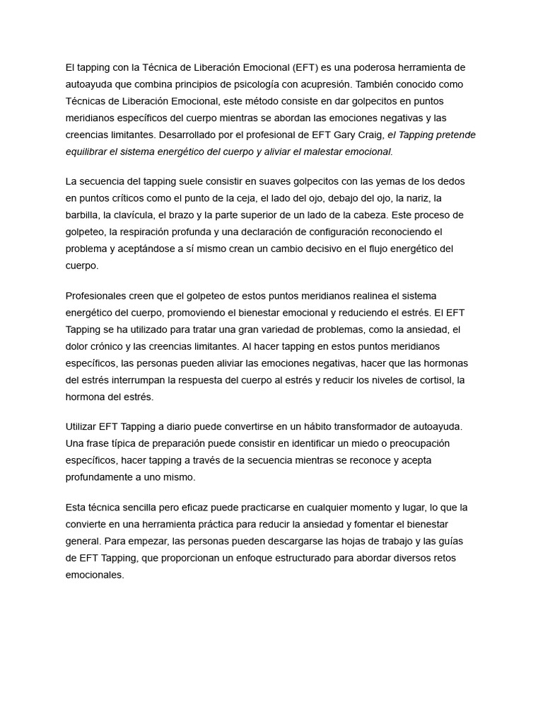 energético del cuerpo, promoviendo el bienestar emocional y reduciendo el estrés. El EFT