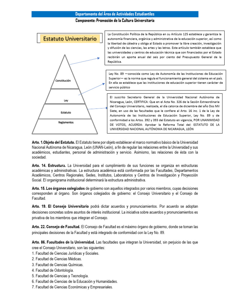 Arto. [Link] del Estatuto. El Estatuto tiene por objeto establecer el marco normativo básico de la Universidad
