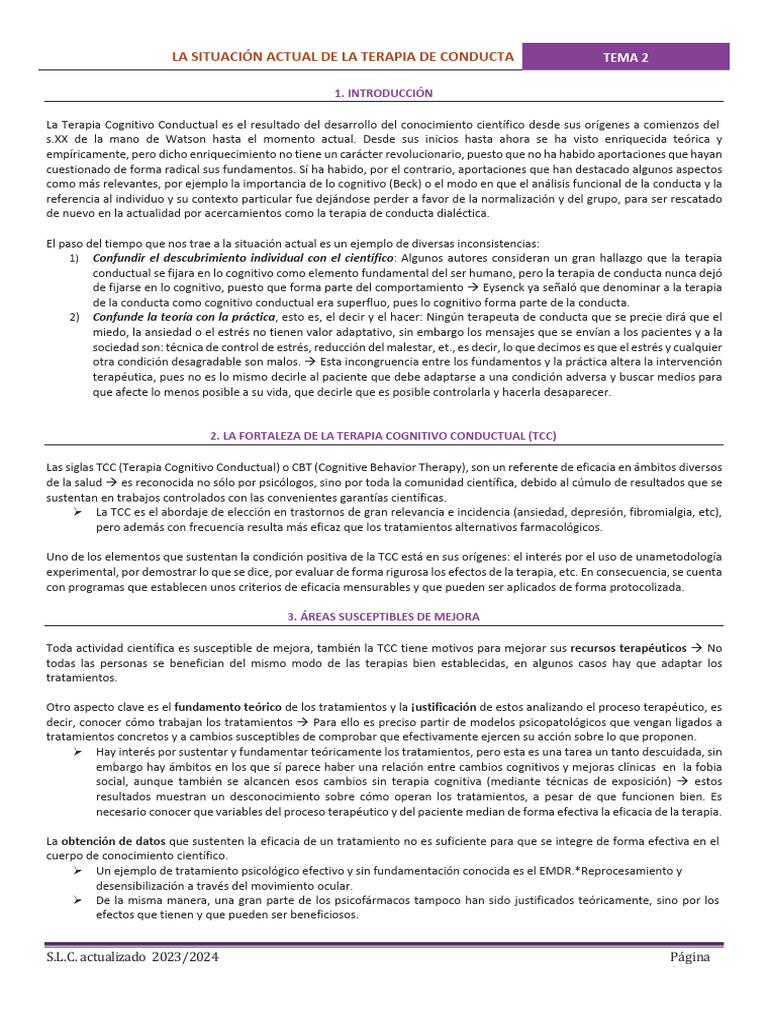 LA SITUACIÓN ACTUAL DE LA TERAPIA DE CONDUCTA TEMA 2