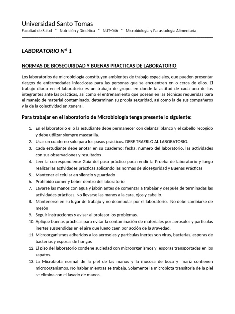 1. En el laboratorio el o la estudiante debe permanecer con delantal blanco y el cabello recogido