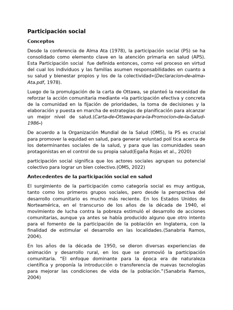 Desde la conferencia de Alma Ata (1978), la participación social (PS) se ha