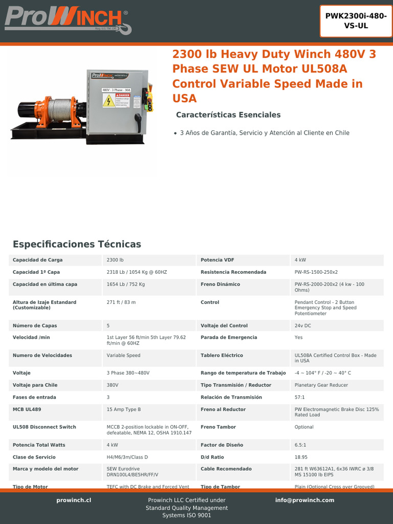 Capacidad de Carga 2300 lb Potencia VDF 4 kW