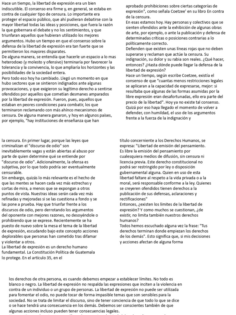 expresión tiene sus límites. Esos límites comienzan cuando se propaga el odio. Empiezan cuando