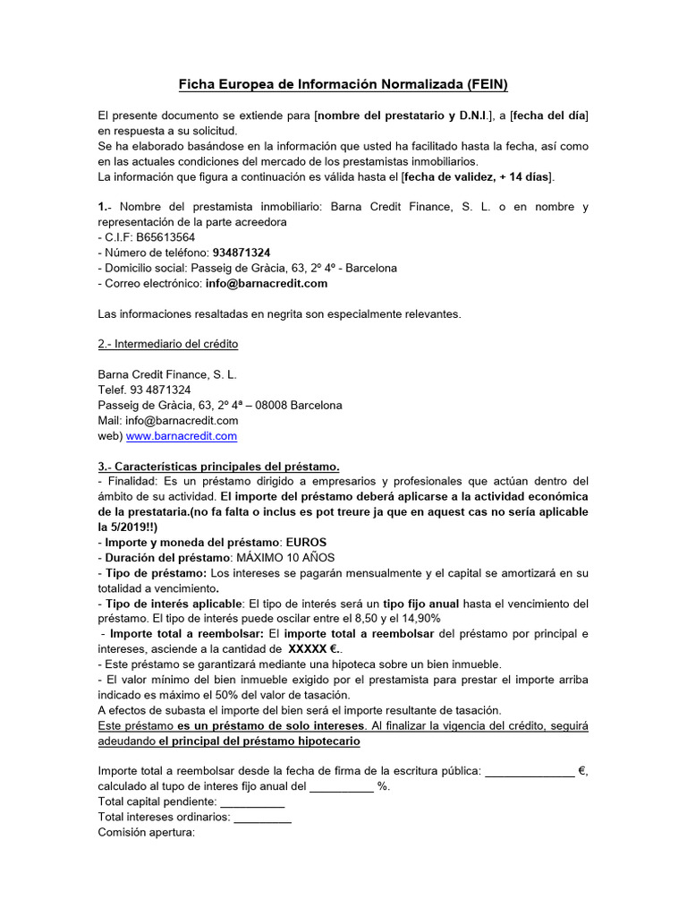 Ficha Europea de Información Normalizada (FEIN)