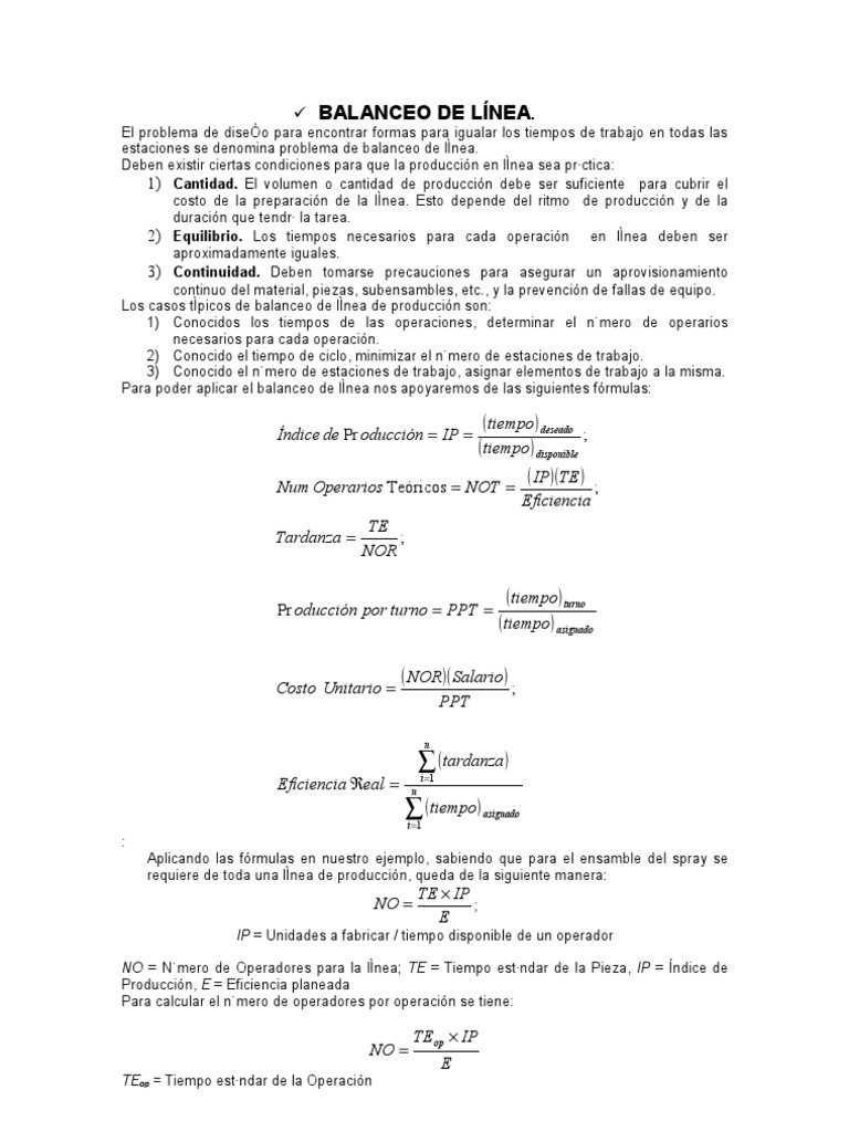 Para poder aplicar el balanceo de línea nos apoyaremos de las siguientes fórmulas: