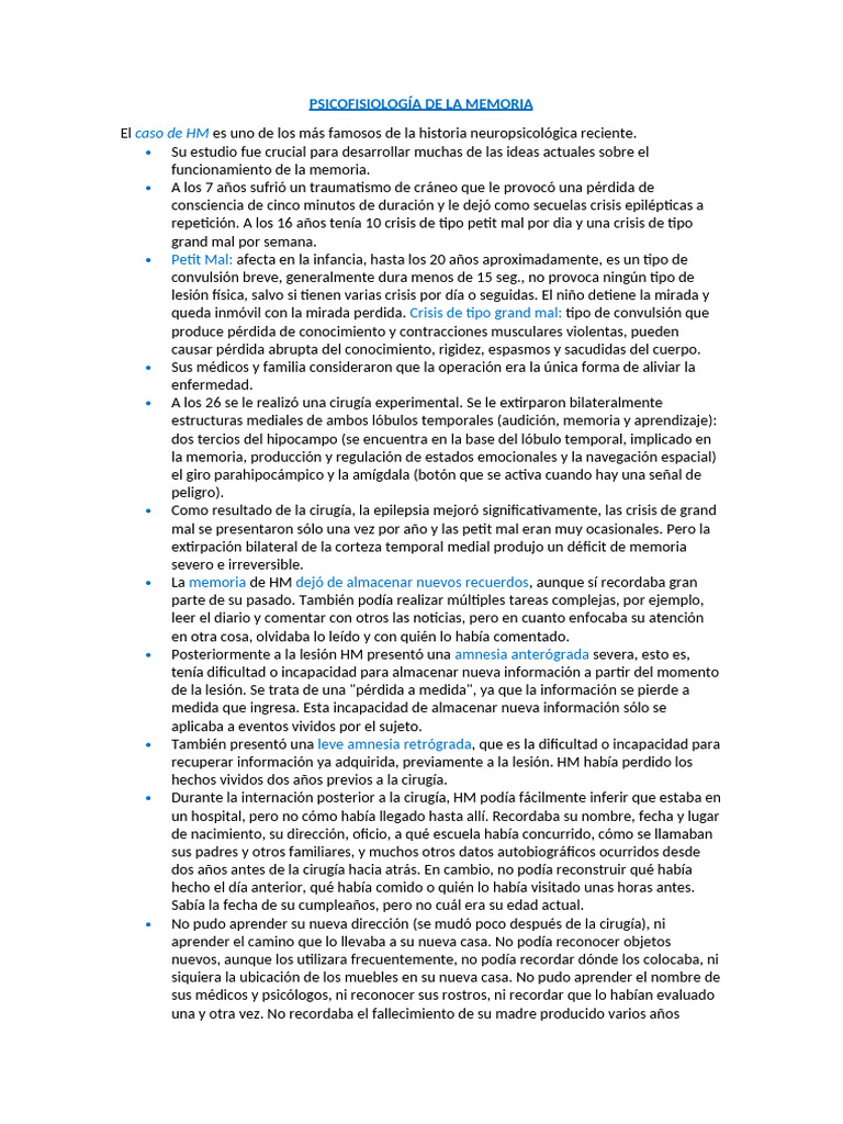 PSICOFISIOLOGÍA DE LA MEMORIA