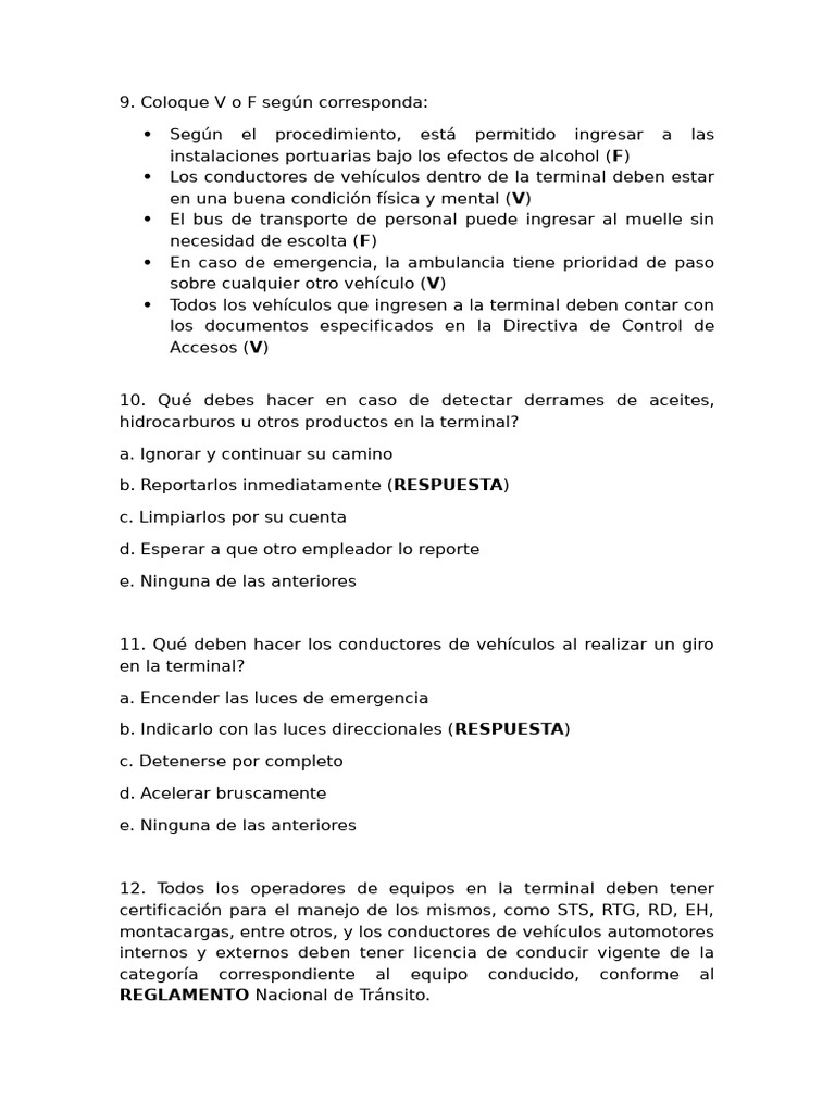 12. Todos los operadores de equipos en la terminal deben tener