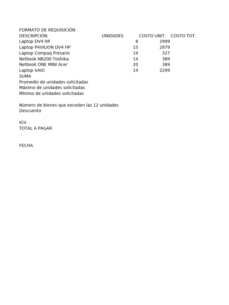 DESCRIPCIÓN UNIDADES COSTO UNIT. COSTO TOT.