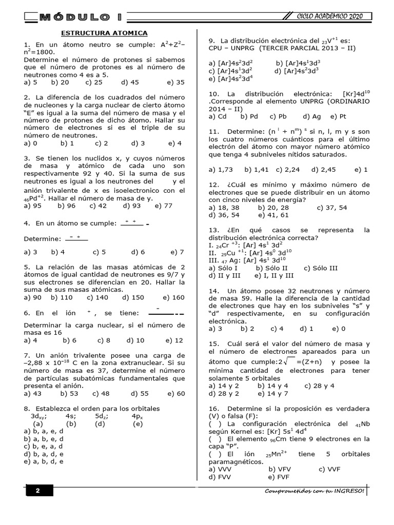 8. Establezca el orden para los orbitales 16. Determine si la proposición es verdadera