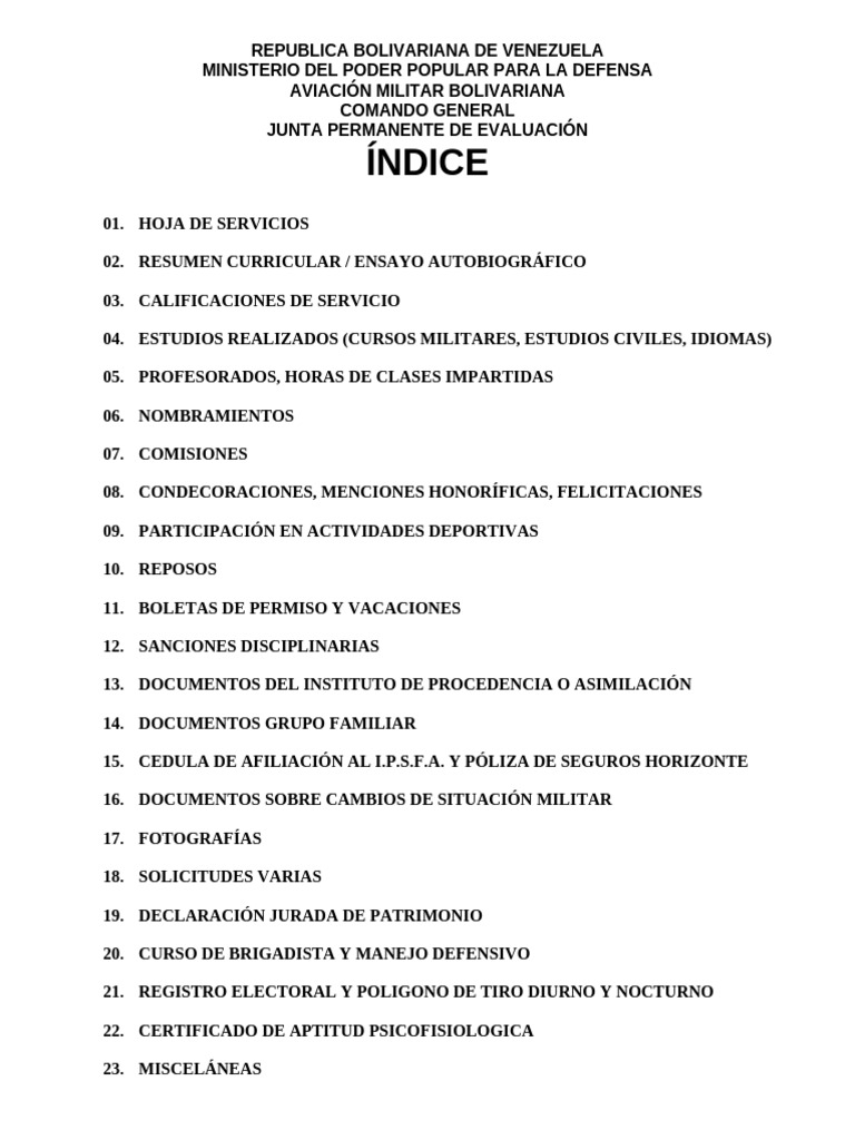 16. DOCUMENTOS SOBRE CAMBIOS DE SITUACIÓN MILITAR