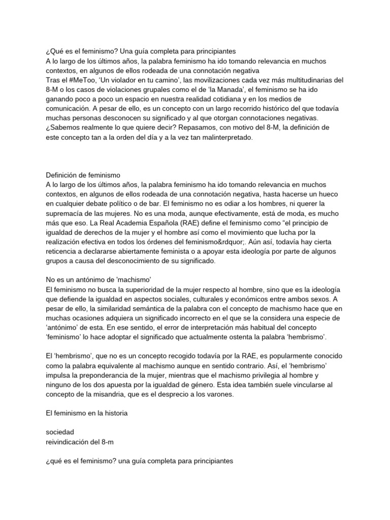 a lo largo de los últimos años, la palabra feminismo ha ido tomando relevancia en muchos