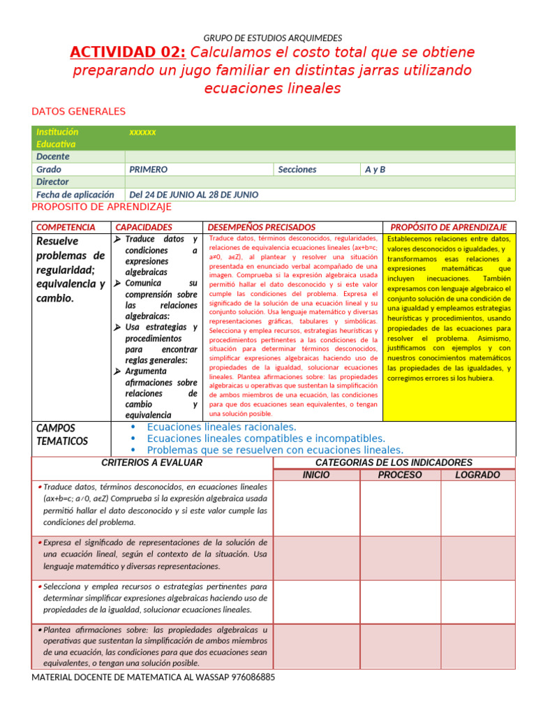 MATERIAL DOCENTE DE MATEMATICA AL WASSAP 976086885