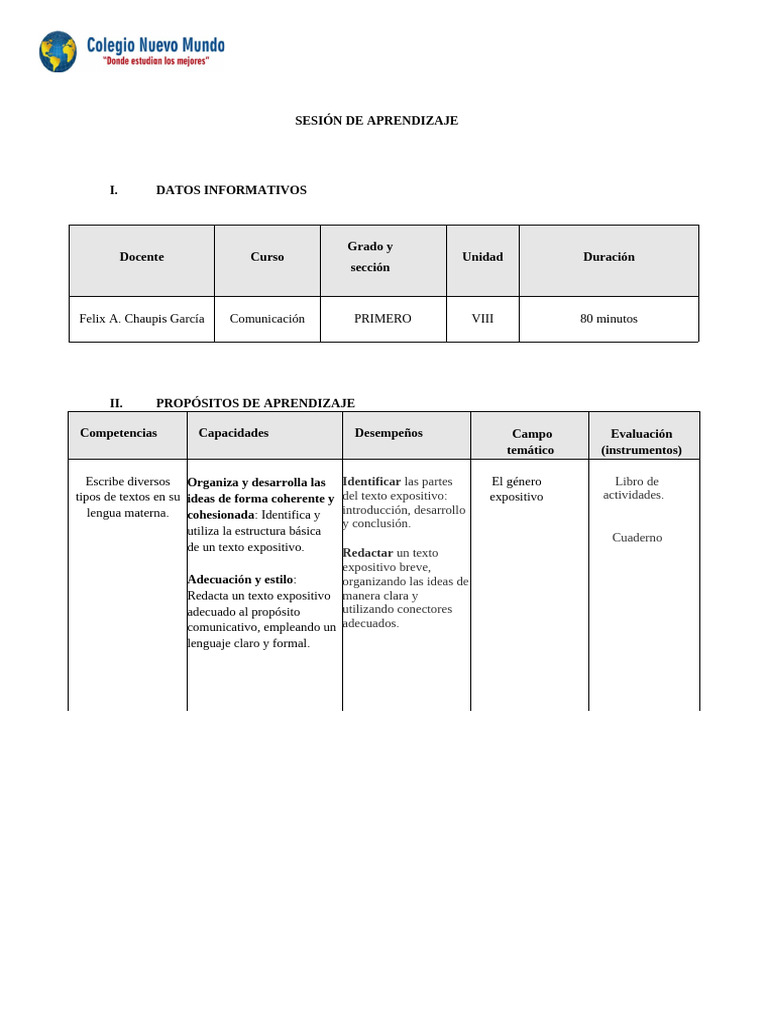 SESIÓN DE APRENDIZAJE