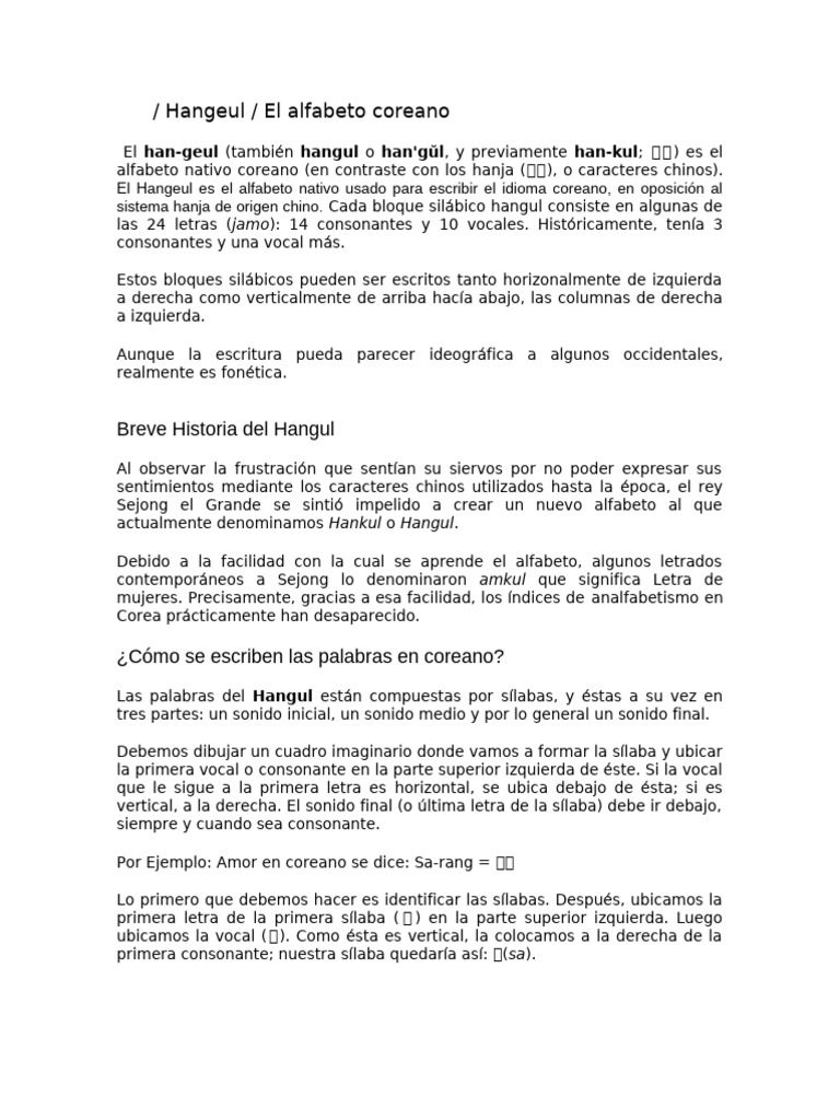 sistema hanja de origen chino. Cada bloque silábico hangul consiste en algunas de